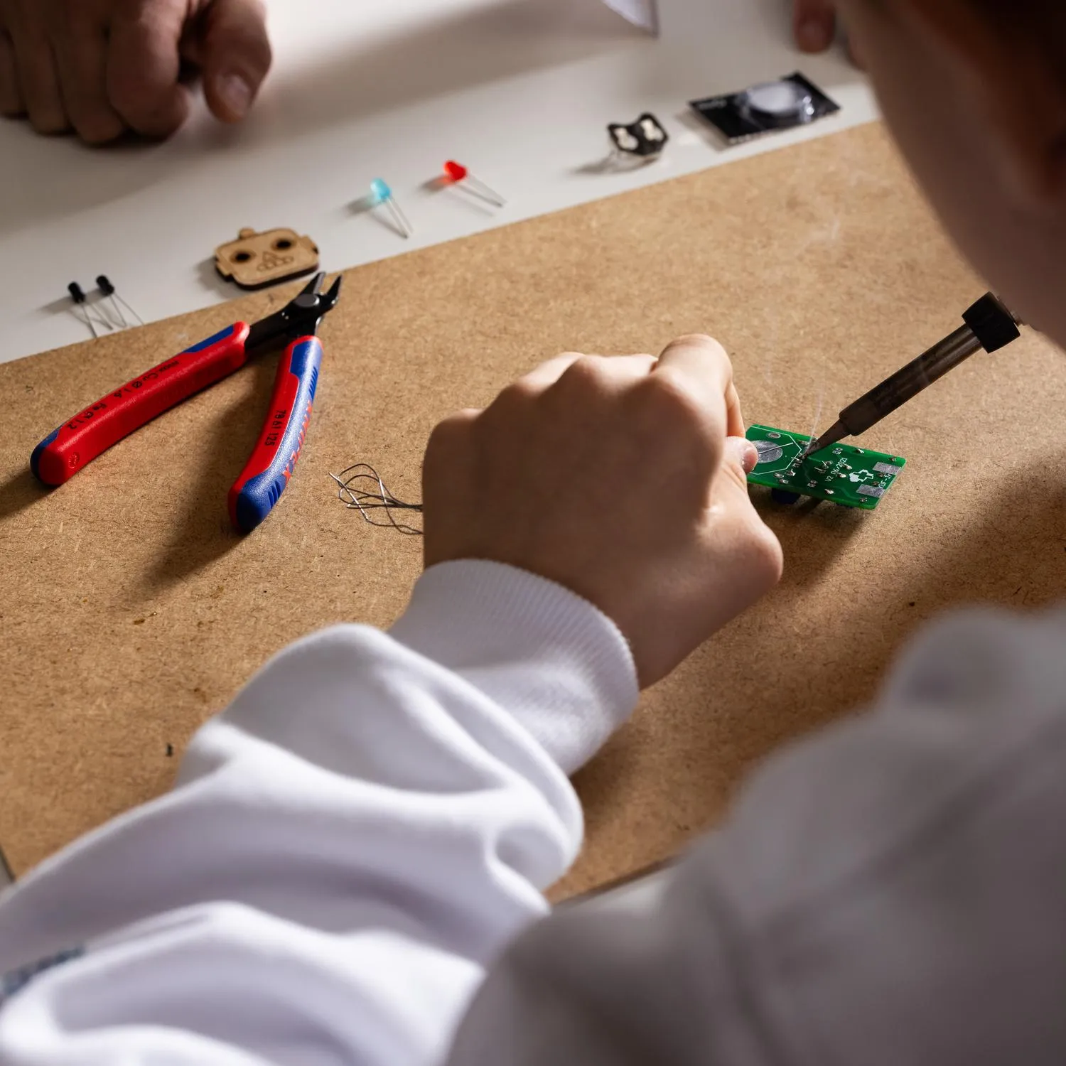 Wir üben auch den Umgang mit dem Lötkolben und bestücken eine Leiterplatte.